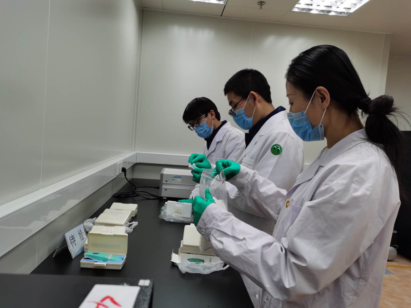 “戰”在一起,便是團聚。剛剛掛斷電話,院子里的車多了起來,這是結束營業的藥店、超市陸續把在用的人體紅外測溫儀送來校正。于是他們迅速投入校準工作中,因為他們知道,新冠肺炎疫情嚴重,紅外測溫儀對疫情防控至關重要,儀器的精準測量對于發現發熱人員十分關鍵。從晚上8點開始,兩組人員緊張有序地工作著,接樣后,對樣品進行消毒,然后校準,記錄,貼簽……這樣的動作一直重復到凌晨2點多。這期間,他們盡量不喝水,少上廁所;盡量不說話,集中精力、節省時間。連續多日的超負荷工作,大家不由自主地打哈欠,他們已經很疲憊了,這時候,剛入職一年的李應東趕緊報一下校準的數字,大家聽到后困意少了許多,勁頭足了一些,堅持著,深夜里只有這樣的方式最能給大家鼓勁提神。