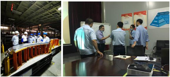 【圖2:張愛(ài)華老師在整車沖壓車間現(xiàn)場(chǎng)審核、孫秀良老師在發(fā)動(dòng)機(jī)同奇瑞公司人員充分溝通】